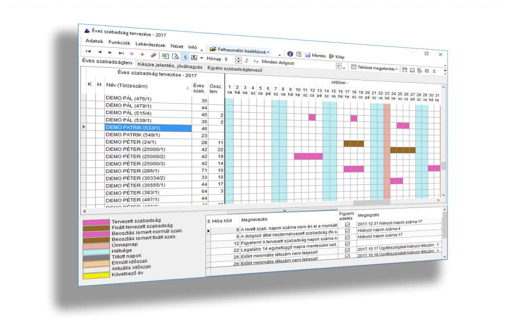 Beosztástervezés, szabadságtervezés és tény munkaidő adatrögzítés